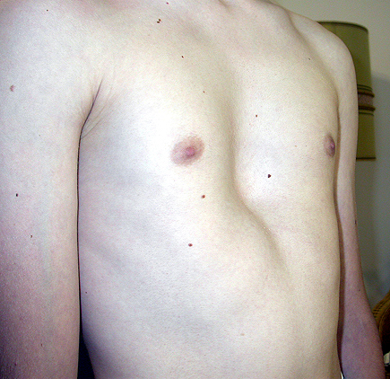 Fig. 1: La gabbia toracica a livello della parte inferiore dello sterno si presenta infossata a forma di imbuto.